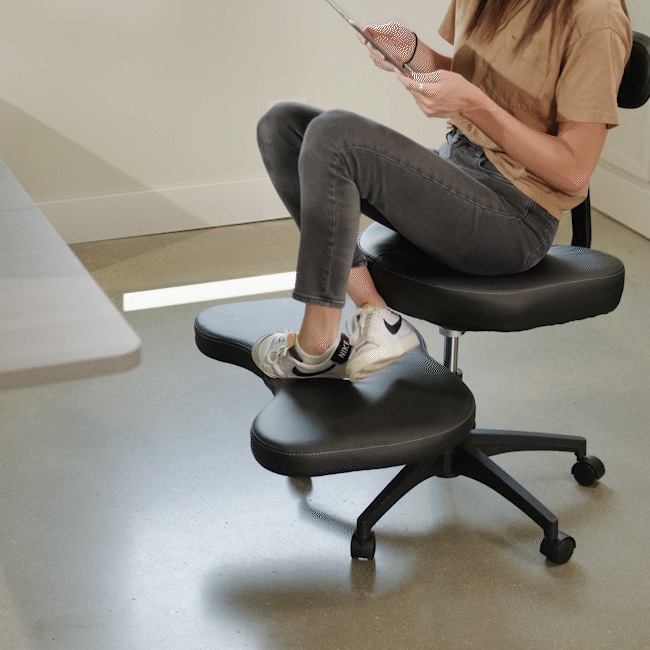 Multi-level design allows for active movement throughout your day, allowing you to switch up how you sit. Easily go from cross-legged to kneeling, squatting, and so much more with a 360° swiveling seat with leg rest. Can also be used as a standard office chair.