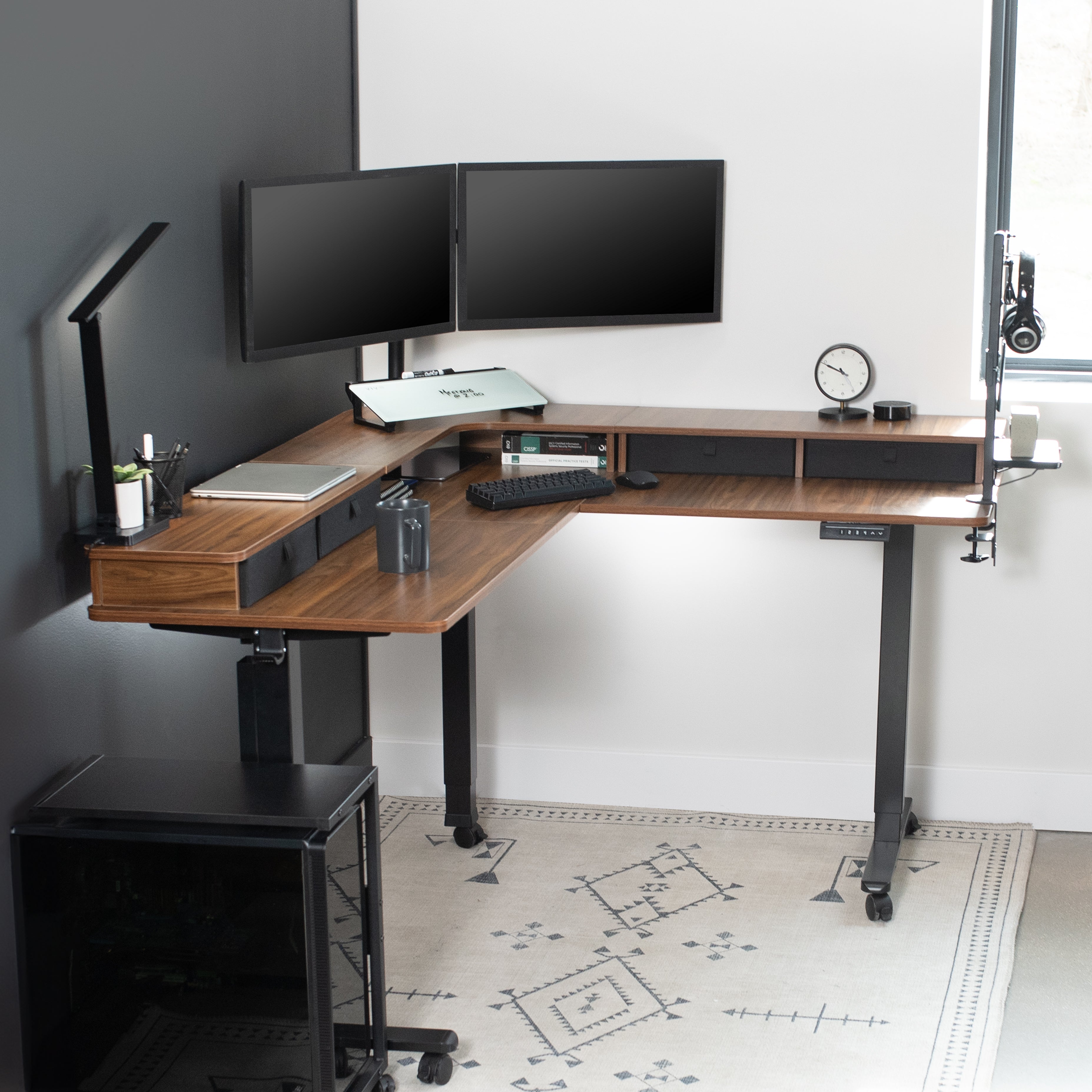 E3CV Series - Two Tier Corner Electric Desk with Storage