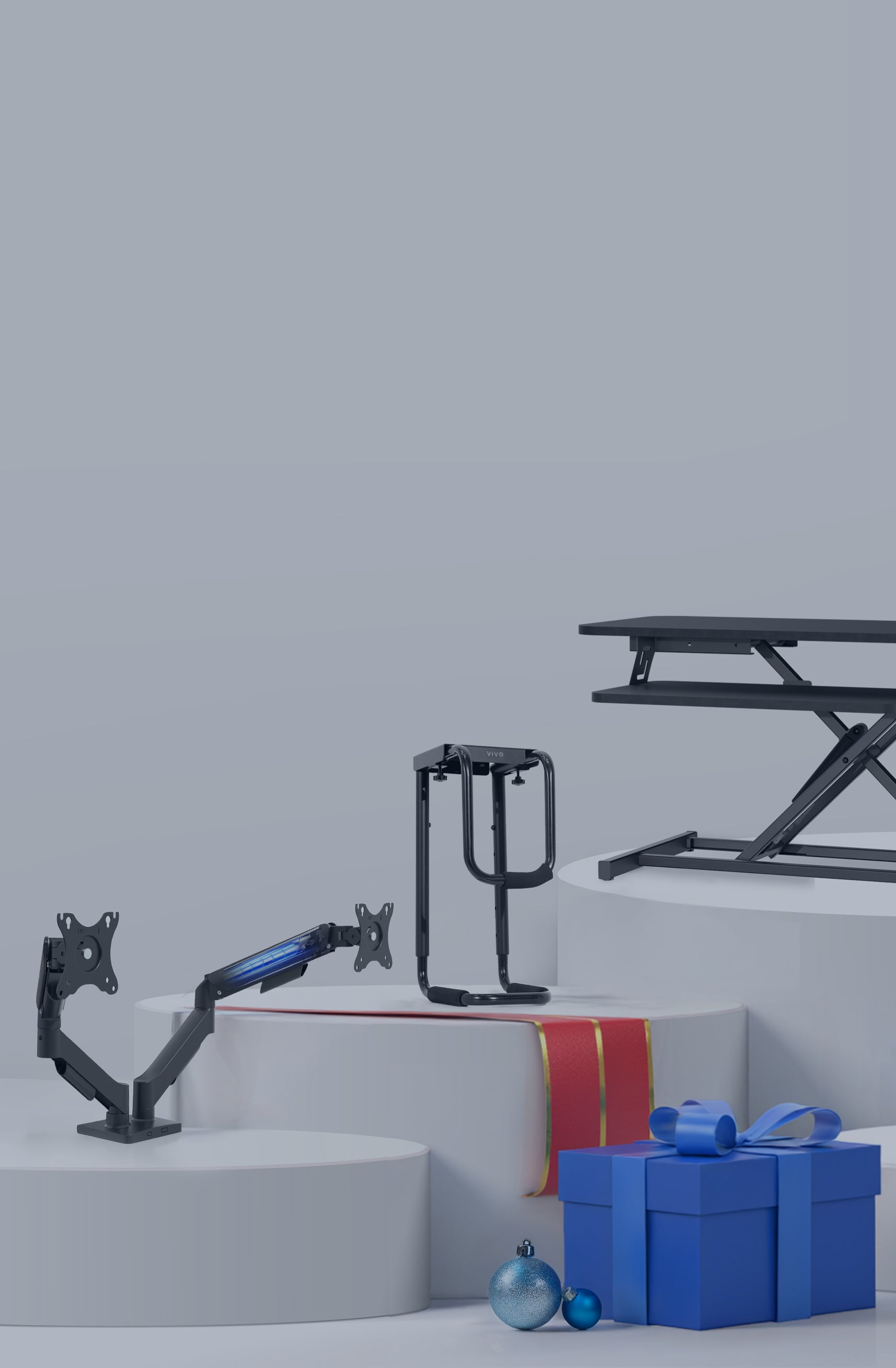 Pneumatic Arm Triple Ultrawide Monitor Extra Tall Desk Mount - Up to 49" Screens