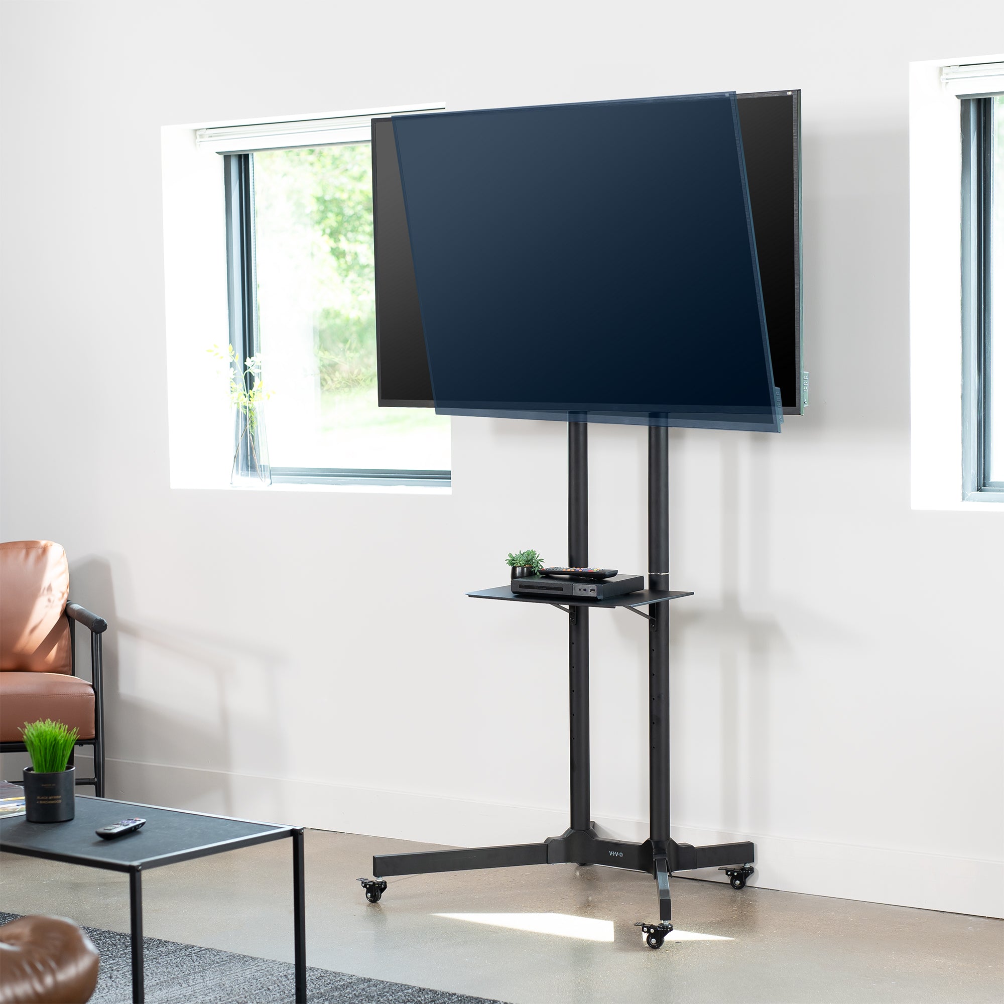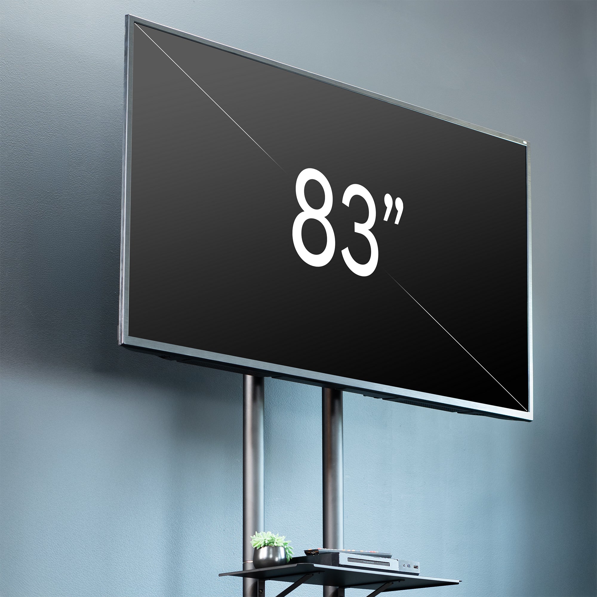 Enhance your visual display with the Mobile TV Cart (STAND-TV03E Series) from VIVO! This sturdy portable TV mount holds the majority of flat and curved screens from 32” to 83” in size and has a weight capacity of 110 lbs. Features include 15-degree screen tilt, locking wheels, cable management, and a middle storage shelf. This television stand provides the perfect setup for both home and professional use whether you’re gaming on your Xbox, giving a work presentation at the office, or teaching in a classroom.