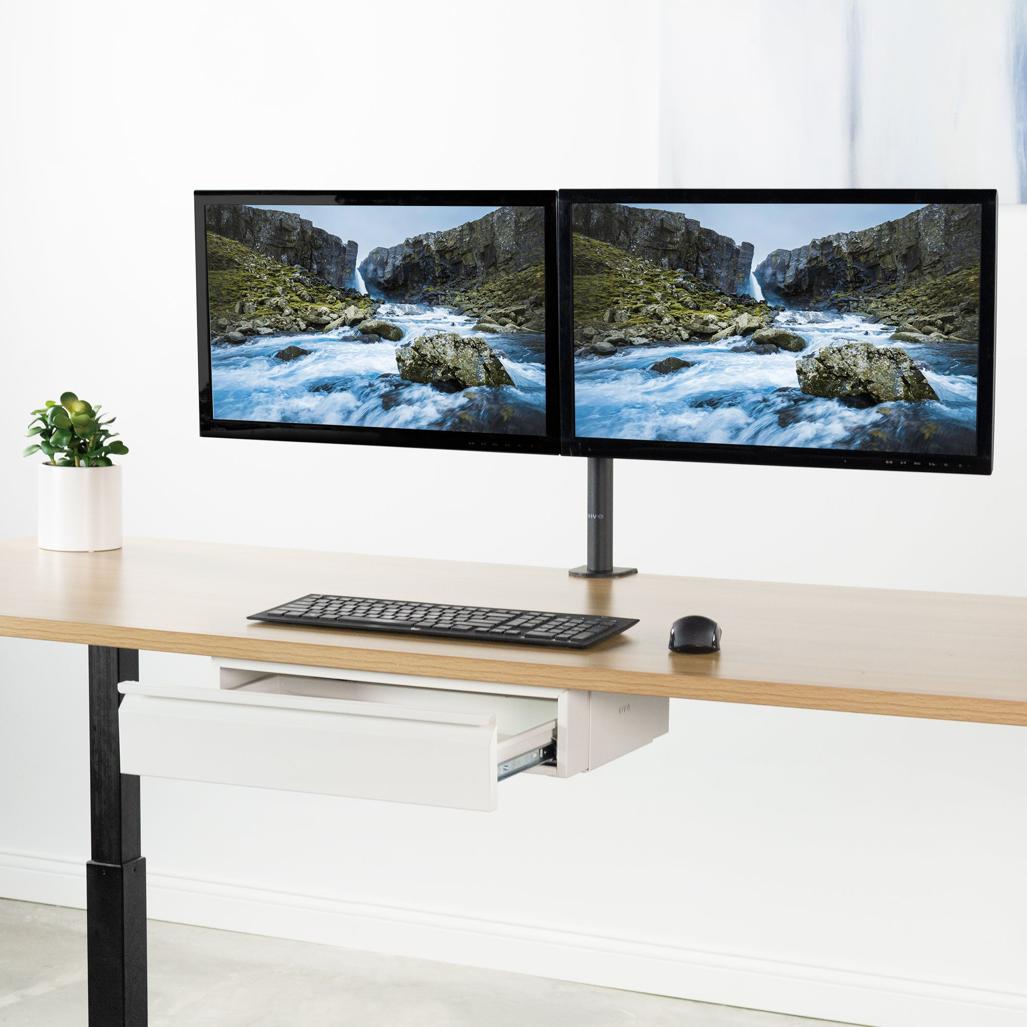 VIVO Premium Aluminum Heavy Duty Dual Monitor Mount holds two 17” to 40” monitors weighing 2.2 lbs to 24 lbs each, including ultra-wide screens.