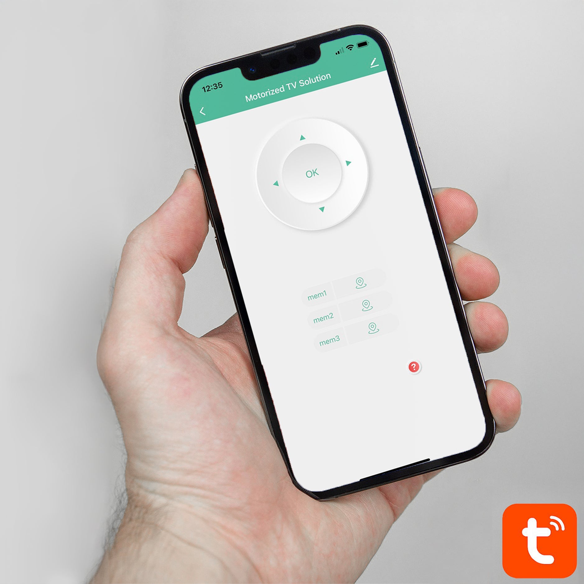 Download and connect this mount to the Tuya mobile app to easily adjust height and swivel from your phone! Save up to 3 memory settings and return to your custom viewing position right from your mobile device.