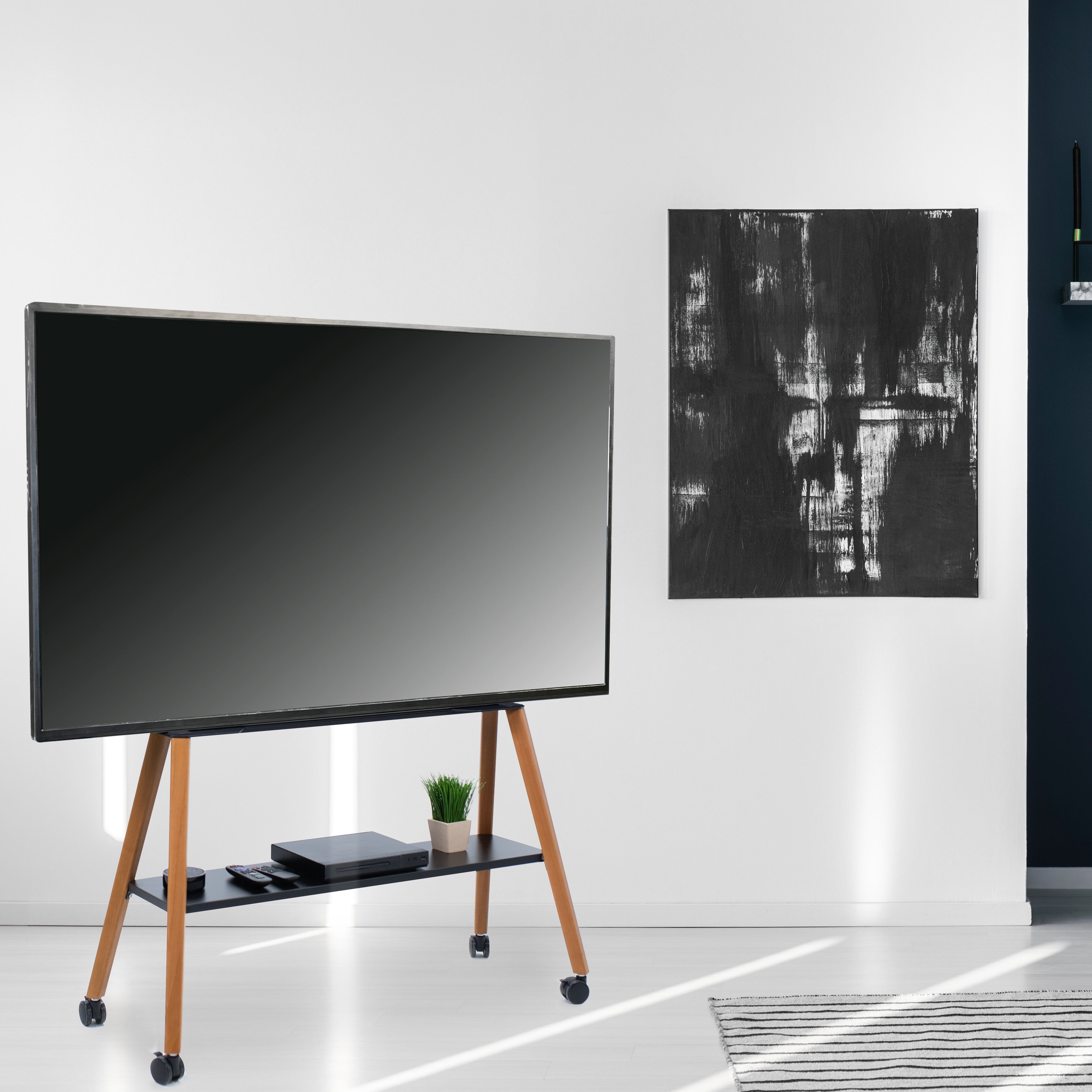 Mobile Easel TV Stand with Shelf for 49” to 75” TVs