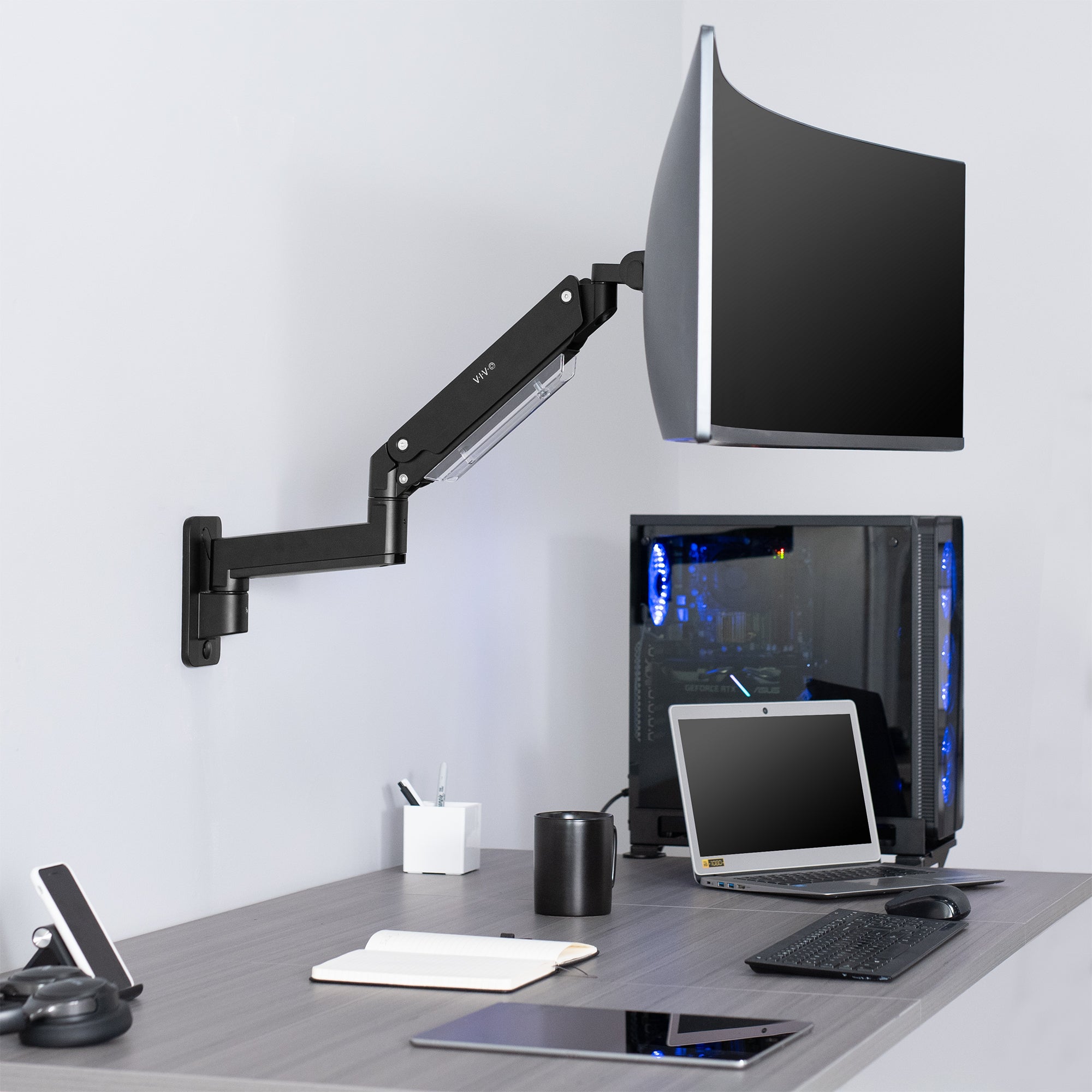 Pneumatic Arm Single Ultrawide Monitor Wall Mount - Up to 49" Screens