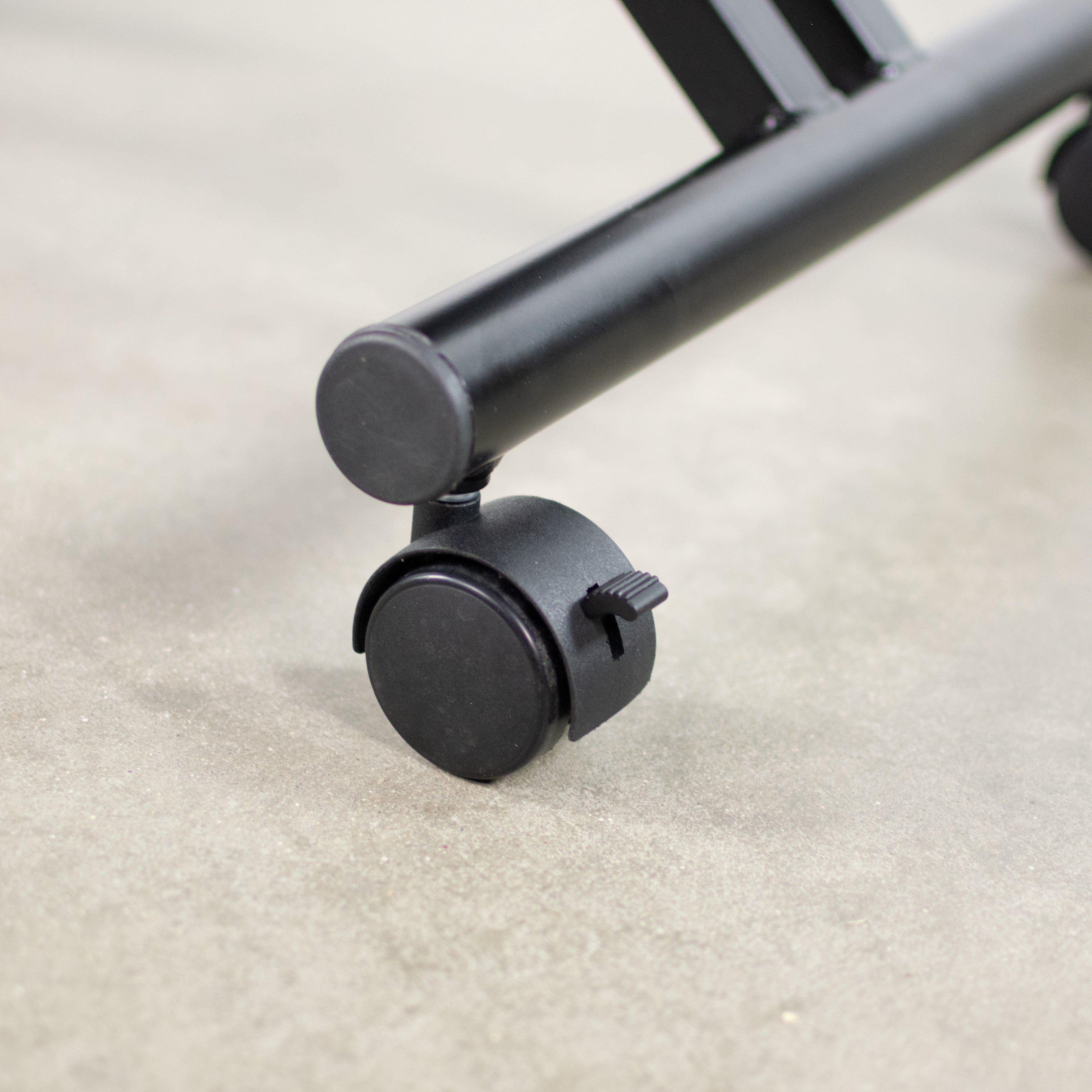 Features four caster wheels for ease of mobility and placement. Back wheels are locking allowing you to keep the chair in place when desired.