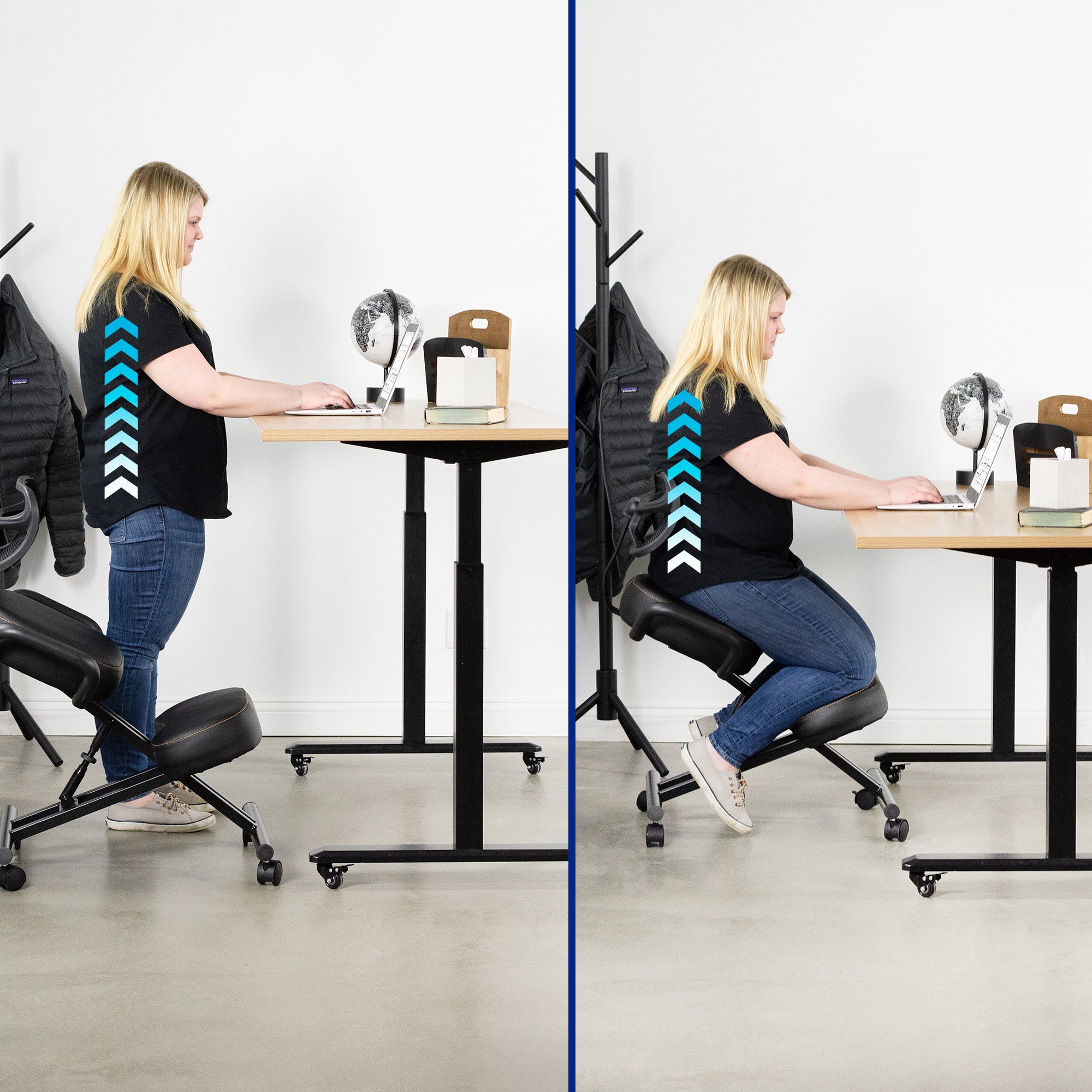PLEASE NOTE: You will use different muscles in a kneeling chair, so it’s best to acclimate yourself when first using or switch positions throughout the day.